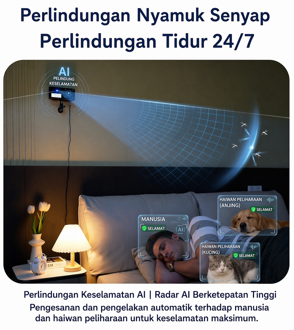 2️⃣ Perlindungan Komprehensif: Liputan menyeluruh 360 darjah tanpa titik buta; mengesan dan menghapuskan serangga terbang dengan tepat, memastikan nyamuk tidak mempunyai tempat untuk bersembunyi.